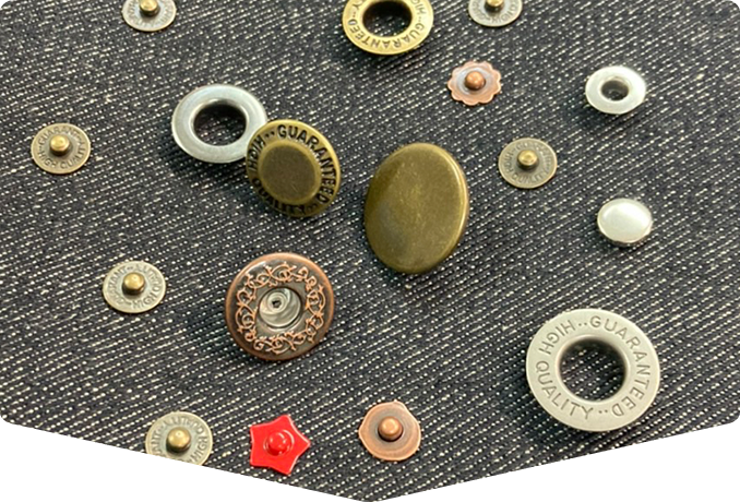 1947年創業。靴などに使用されるハトメや、ジーンズに使われるボタンやリベット、ホック等服飾関連に使われる資材を製造するメーカー。ファスニングという機能面の追求と、きめ細やか彫刻と鍍金や塗装、自社金型製造など高い小型金属加工技術を保有している。