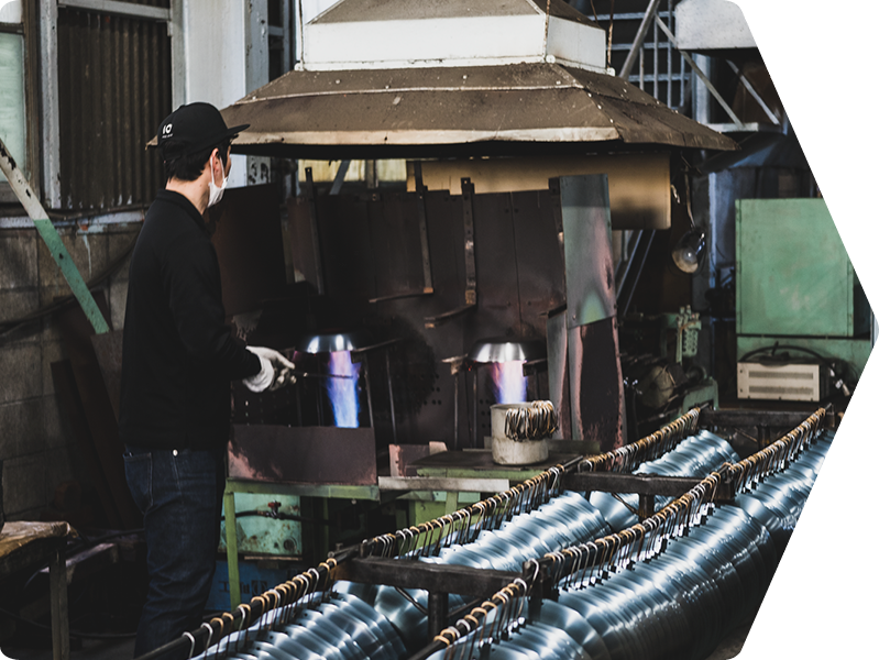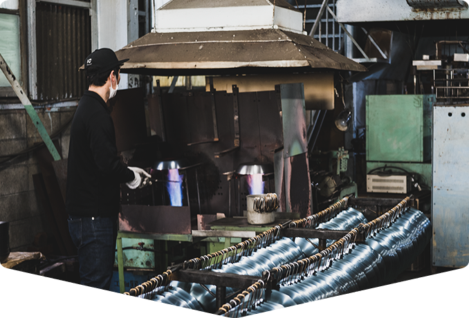 1951年創業。金型製造から製品加工、そして販売まで。すべての工程を一貫して行うメーカー。約40年前に一度廃盤になった鉄フライパンを復活させ主力商品に。他にも鍋やヤカン、コップなどの金属製品を作り続けていて、2021年には新分野でテーブルランプや植木鉢も製造販売開始。